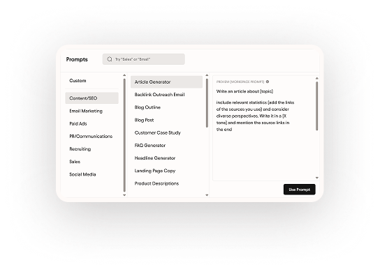 Streamline your workflow with intelligent search and customizable AI prompts. Designed to boost productivity.